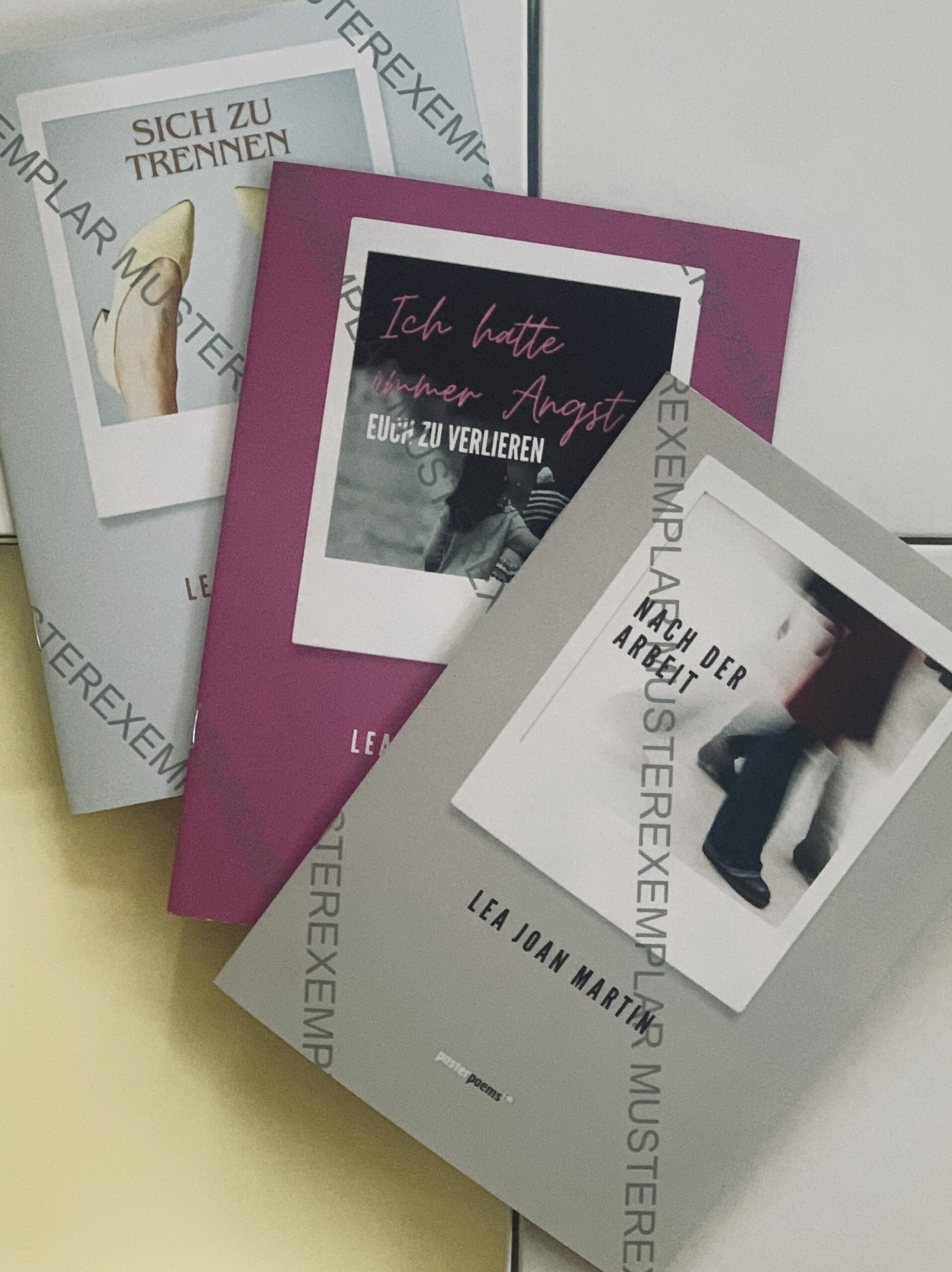 Drei Posterpoem-Hefte von Lea Joan Martin nach freier Wahl aus der aktuellen Posterpoem-Reihe. Künstlerische Heftreihe im Format DIN A5. Lieferung in einer schlichten weißen Geschenkbox.