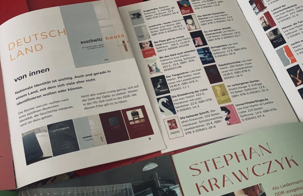 Erstmals war j:m: beim Berliner Bücherfest dabei. Wir haben uns den Stand F 16 mit dem Magas-Verlag geteilt. Am Samstag hat der Schriftsteller und Liedermacher Stephan Krawczyk sein Buch »Augenhöhe« an unserem Stand signiert,. Die letzten Exemplare wurden verkauft. Jetzt geht das Werk die 2. Auflage und kann hier vorbestellt werden. Beim Gewinnspiel von j:m: konnte ein Buch nach Wunsch gewonnen werden. Die Gewinnerin hat »Die überall küssenden Pärchen« erhalten, als 2. Preis wurde »Die Entstehung der Liebe« gewünscht und als 3. Preis »Gepäckkontrolle« gewonnen. Daneben gab es viele Postkarten und Friedenssamen zu gewinnen.